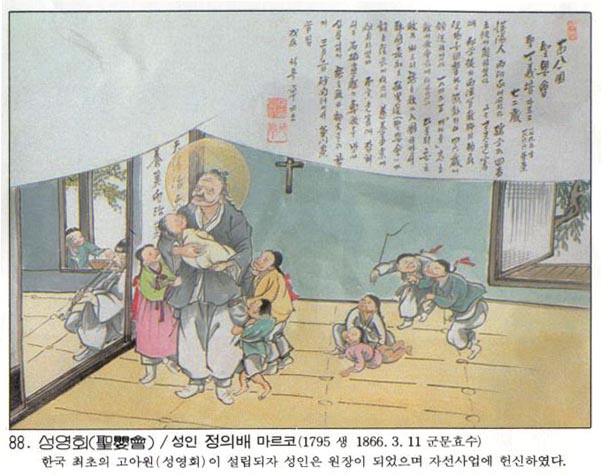 Çѱ¹ õÁÖ±³È¸ÀÇ 103¸íÀÇ ¼ºÀÎÁß ÇÑ»ç¶÷.¼­¿ï ⵿(óÚÔ×)¿¡¼­ ž Á¤Àǹè´Â À¯ÇÐ(êãùÊ)À» °øºÎÇÏ´Ù°¡ 1839³â ±âÇØ¹ÚÇØ ¶§ ¼­¾ç ¼±±³»çÀÇ ¼ø±³ Àå¸éÀ» ¸ñ°ÝÇÏ°í °¨µ¿ÇÏ¿© °ð ±³¸®¸¦ ¹è¿ì°í ÀÔ±³ÇÏ¿´´Ù. 1845³â Á¦3´ë Á¶¼±±³±¸Àå °í ÁÖ±³°¡ ÀÔ±¹ÇÑ µÚ ¼­¿ï Áö¿ªÀÇ È¸ÀåÀÌ µÇ¾î 20¿© ³â µ¿¾È Çå½ÅÀûÀ¸·Î ÀÏÇÏ¿´°í, 1854³â¿¡ ...