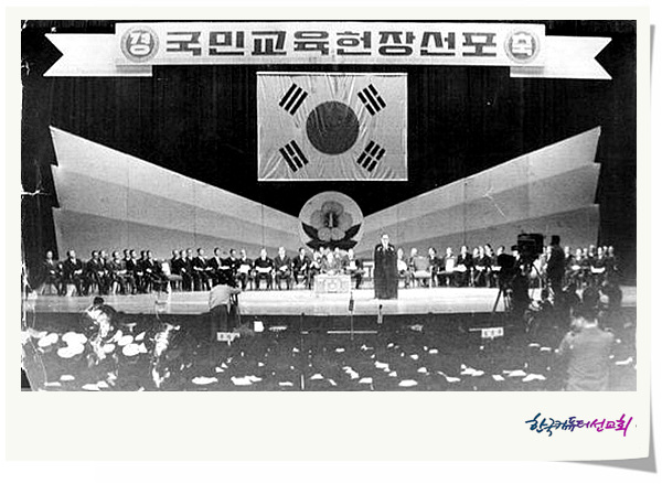 1968³â 12¿ù 5ÀÏ ¹ÚÁ¤Èñ ´ëÅë·É¿¡ ÀÇÇØ °øÆ÷µÈ ±³À°ÇåÀåÀ¸·Î ¸ðµç ±¹°ø¸³Çб³¿¡¼ Çлýµé¿¡°Ô ¿Ü¿ìµµ·Ï ÇÏ¿´´Ù.
