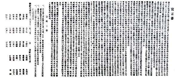 | 1919³â 3¡¤1¿îµ¿ ¶§ ¹ÎÁ·´ëÇ¥ 33ÀÎÀÌ Çѱ¹ÀÇ µ¶¸³À» ¼±¾ðÇÑ ±Û.