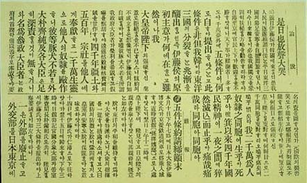 | 1905³â 11¿ù 20ÀÏ ÀåÁö¿¬Àº ÀÚ½ÅÀÌ ¹ßÇàÇÏ´ø ¡¶È²¼º½Å¹®¡·¿¡ À»»çÁ¶¾àÀÇ ºÎ´çÇÔ°ú À̵î¹Ú¹®(ÀÌÅä È÷·ÎºÎ¹Ì)À» ±ÔźÇÏ´Â ³»¿ëÀÇ Á¦¸ñÀ¸·Î ½Å¹® 2¸é¿¡ '½ÃÀϾ߹漺´ë°î'(ãÀìíå¥Û¯á¢ÓÞÍÖ)À̶õ Á¦ÇÏ¿¡ ³í¼³À» ½Ç¾ú´Ù.