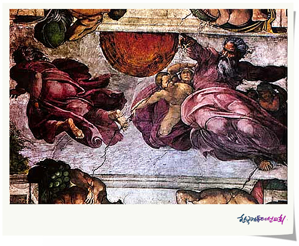 ¹ÌÄ̶õÁ©·Î´Â ÀÌ ÃµÁ¤ÈÀÇ °¡¿îµ¥ Ãà¿¡ ÇØ´çÇÏ´Â ±×¸²ÀÇ ±¸ºÐ¿¡ 4üÀÇ ³ªÃ¼»ó<ÀÌ´ºµµ(Ignudo)>ÀÌ ÀÖ´Â ÀÛÀº ÇüÅÂÀÇ °Í°ú ±×°ÍÀÌ ¾ø´Â Å« ÇüÅÂÀÇ °æ¿ì¸¦ ±³´ë·Î ¹è¿ÇÏ¸é¼ ¿¹¹è´ç ¾ÈÂÊ¿¡¼ºÎÅÍ ³»¿ëÀÇ ¼ø¼°¡ ½ÃÀ۵Ǿî ÀÔ±¸¿¡¼ ³¡³ª´Â Çü½ÄÀ» ÃëÇϰí ÀÖ´Ù.