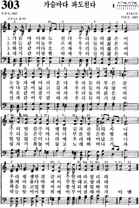 1. °¡½¿¸¶´Ù ÆÄµµÄ£´Ù ¿ì¸®µéÀÇ ÀþÀºÀÌ ´«µ¿ÀÚ¿¡ ¾î¸®¿î´Ù ¿ì¸®µéÀÇ Çª¸¥ ²Þ ÁÖÀÇ ¸»¾¸ ÁÖÀÇ ÇàÇÔ ±æ°ú Áø¸® µÇ½Ã´Ï ¿ì¸® Æò»ý ÇѰᰰÀÌ ÁÖ¸¸ µû¶ó »ì¸®¶ó 2. Çϴð°ÀÌ ³ôǪ¸£ÀÚ ¿ì¸®µéÀÇ ÀþÀºÀÌ ¹Ù´Ù°°ÀÌ ³Ð°í ±íÀÚ ¿ì¸®µéÀÇ »ç¶ûÀÌ ¿ì¸®µéÀº ÁÖÀÇ ÀÚ³à ºÎ¸§¹ÞÀº ÇÑ ÇüÁ¦ ¸ö°ú ¸¶À½ ´Ù ¹ÙÃļ ÁÖ ¶æ´ë·Î »ì¸®¶ó  ...